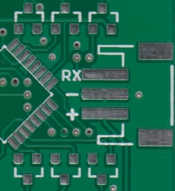 • Silkscreen - the letters, number, symbols, and imagery on a circuit board. Usually only one color is available, and resolution is usually fairly low.