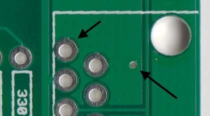 PTH (plated through-hole) pads on the left, SMD (surface mount device) pads on the right.