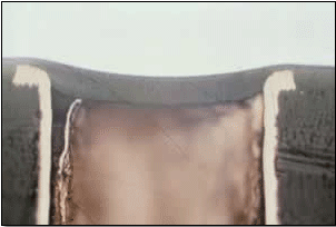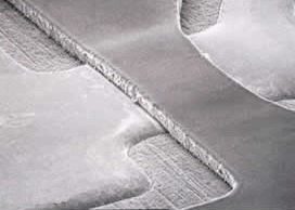 You will appreciate from your study of Unit 2 that dry film materials adhere best to flat surfaces; given the necessarily uneven surface of the patterned board, a liquid photomask will be in more intimate contact with the foil and underlying laminate than a film type (Figure 1). For the highest definition, LPISM will generally be preferred, generally with a matte finish, because this reduces the potential of solder balling during reflow.