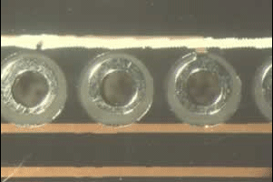 While vias may be covered by solder mask (referred to as "tented") (Figure 4), if vias are used as test points, care should be taken to have an aperture in the solder mask on the top surface, to allow gas to escape from the via during wave soldering. (Purves suggests that this should be 100µm larger than the finished drill size used for the via) This procedure allows the via to fill with solder and create a good test probe target.