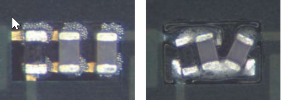 As illustrated in the image above, through-hole components experience bridging due to the structures of pins and plated holes and the wave solder process often used to assemble them