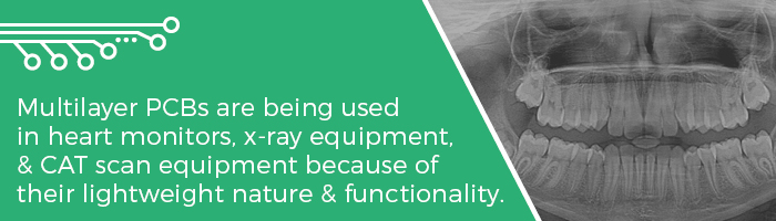 · And Many More! Multilayer PCBs are used in a wide variety of other industries, including the science and research industry and even home appliances and security. Everything from alarm systems and fiber optic sensors to atomic accelerators and weather analysis equipment uses multilayer PCBs, taking advantage of the space and weight savings offered by this PCB format, as well as their heightened functionality.