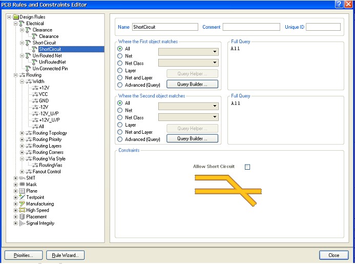 You can also define other design rules some rules are shown in Fig 5, and those rules will not be explained one by one. Most of time we only need to define the electrical rules and use default setting for other rules.